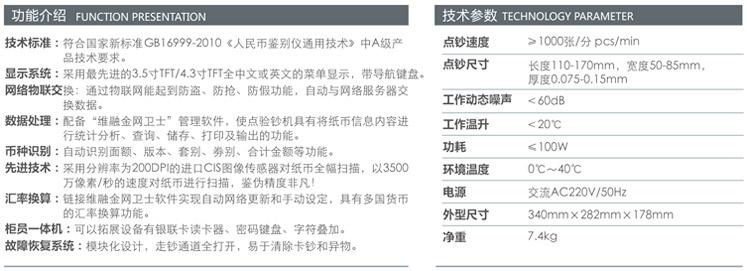 點鈔機類型: 插電式<br>屏幕數量: 雙屏<br>級別: A類<br>顏色分類: 銀黑色<br>支持貨幣:人民幣、美元、歐元、韓元<br>鑒偽方式:12種