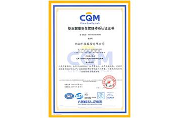 職業(yè)健康安全管理體系CQM認(rèn)證證書