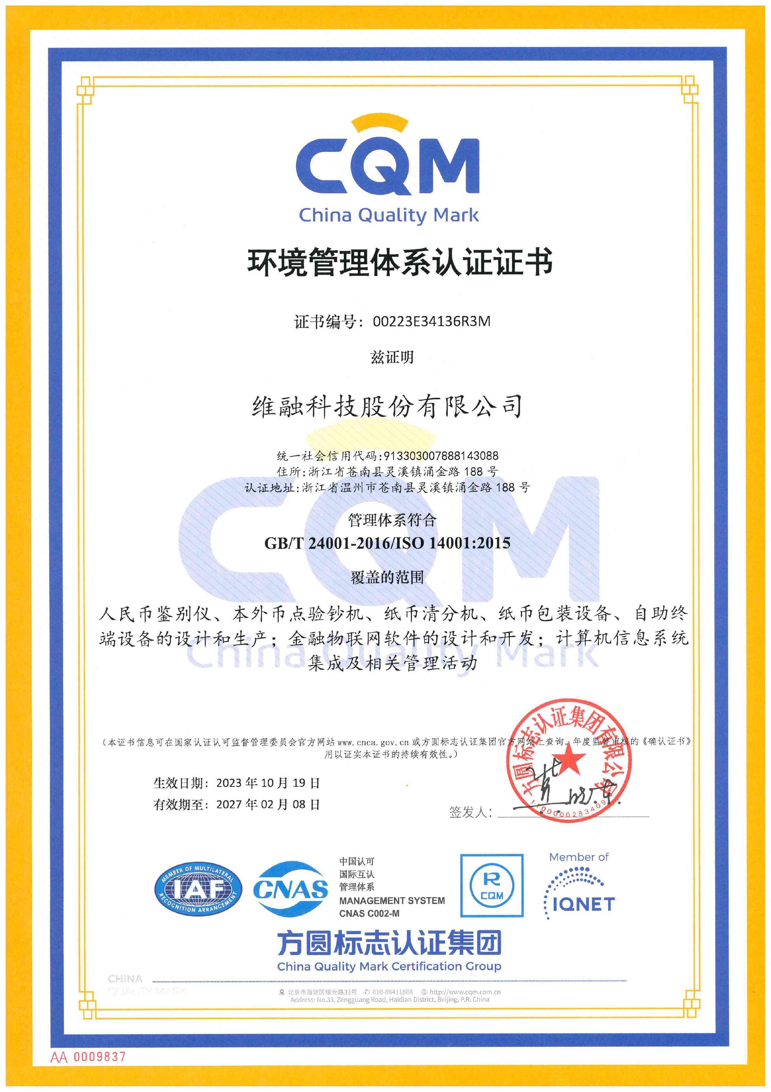 信息技術(shù)服務(wù)管理體系CQM認(rèn)證證書